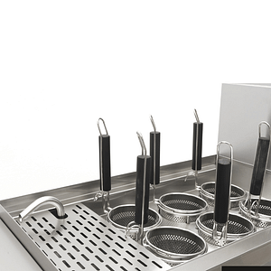 - Six Cooking Baskets: Comes with six Ø 125mm x 132mm baskets, allowing you to prepare different pasta types simultaneously, minimizing flavor transfer.