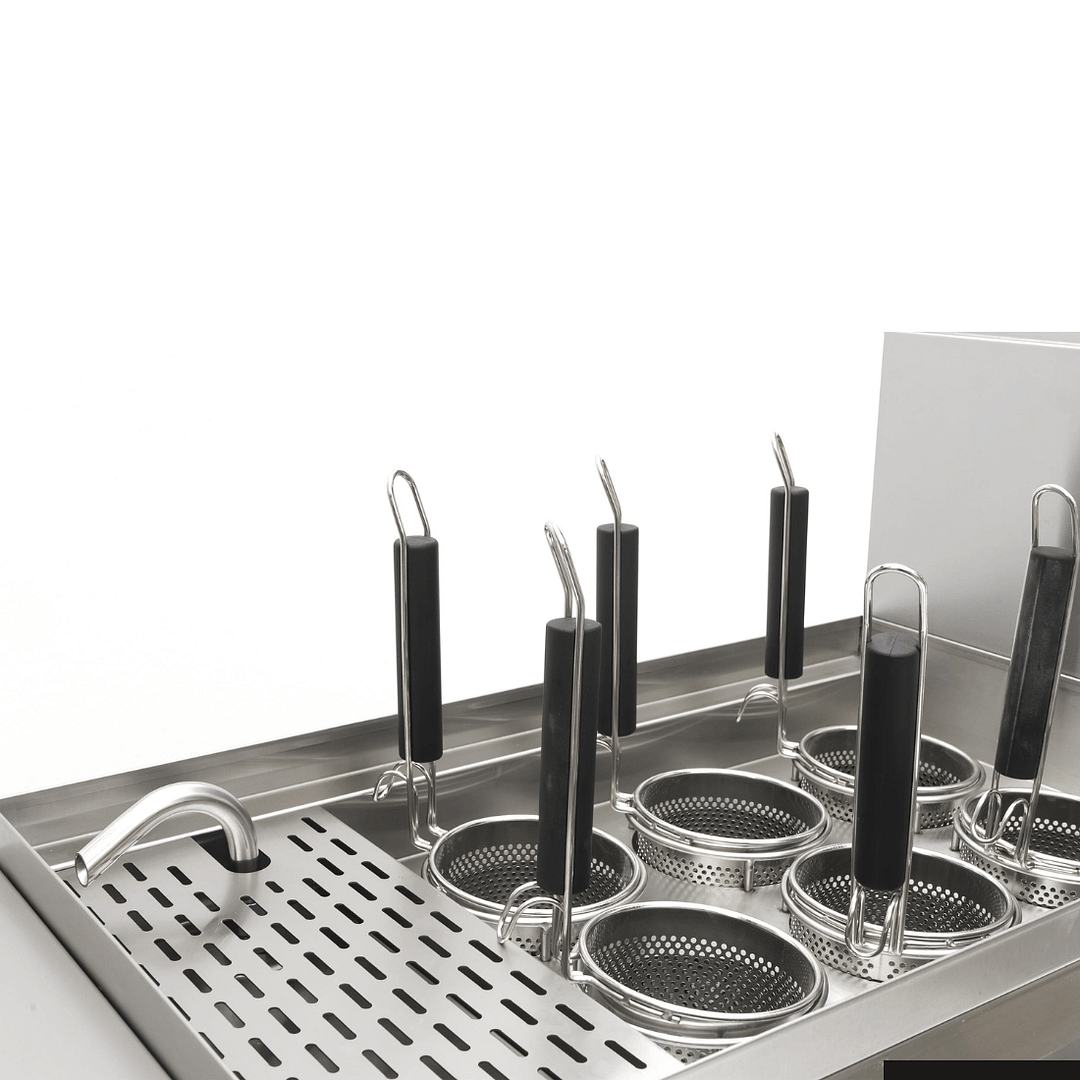 - Six Cooking Baskets: Comes with six Ø 125mm x 132mm baskets, allowing you to prepare different pasta types simultaneously, minimizing flavor transfer.
